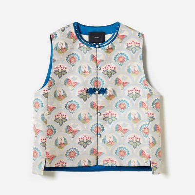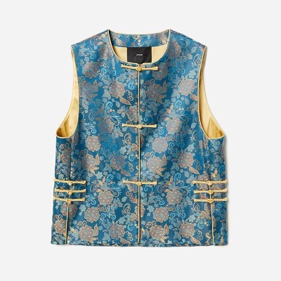 WWT07143 MORSERE 新しい中国式42ムー米蝶孔雀宋錦全シルク真珠襟盤釦対襟ベストです