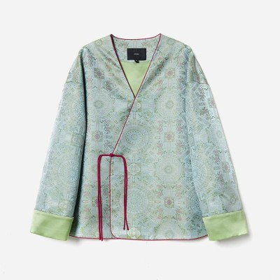 WWT07050 MORSERE 34穆米八達暈紋宋錦全真糸斜偏門襟V襟外套女