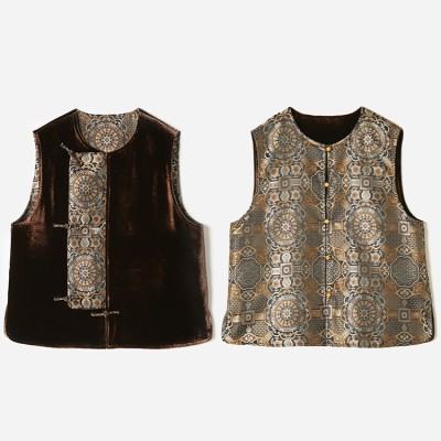 WWT07004 MORSERE 新しい中国式の両面は風を着て四合如意をまねて宋錦ジャカードをつづりますシルクのベルベットベスト女性