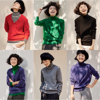 WZT06027 フルカシミヤタートルネック/Vネック長袖ドロップニット