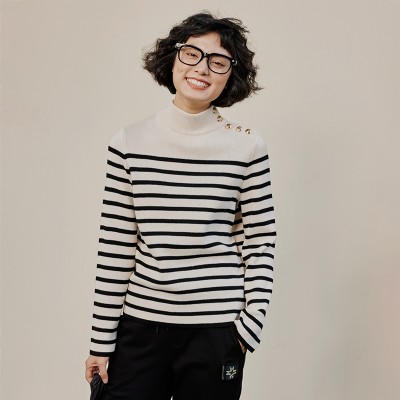 WZT06216 ウールストライプのハーフタートルネックのカットソーです