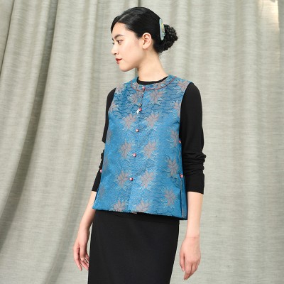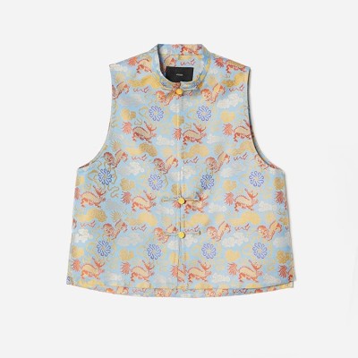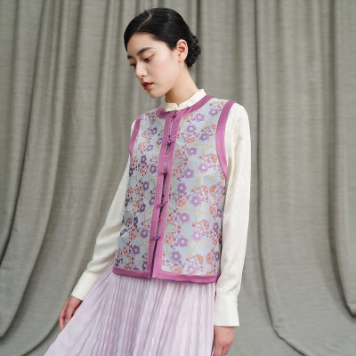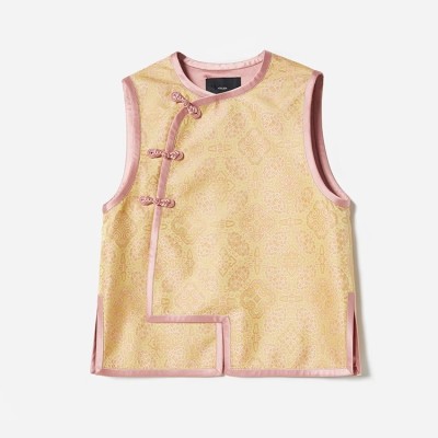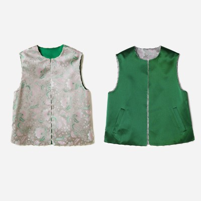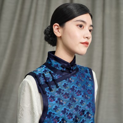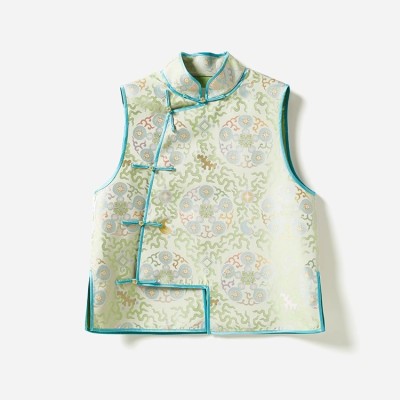 WWT06113 MORSERE 珠聯璧合紋非遺宋錦全真糸立襟斜門襟袖なしチョッキ外套
