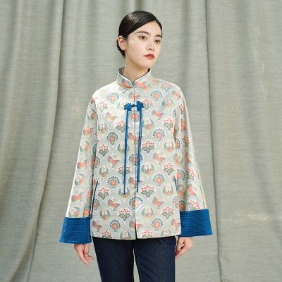 WWT07037 MORSERE 33ムミです蝶の恋の花の全真糸非遺宋錦の側結んで丸首の長袖の外套女性を結びます