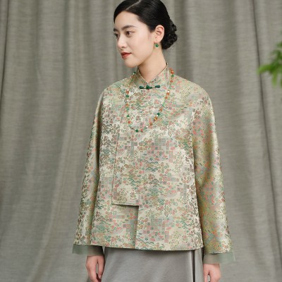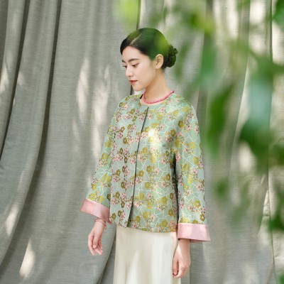 WWT07034 MORSERE 42MM新しい中国式の丸首祥雲四合如意全シルク宋錦長袖外套女性です