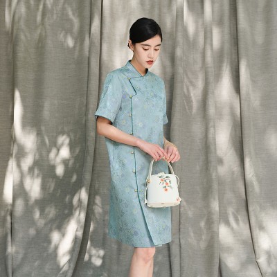 WLQ07026 MORSERE 中国式の美学30MM宋錦全のシルクの偏襟のチャイナドレス